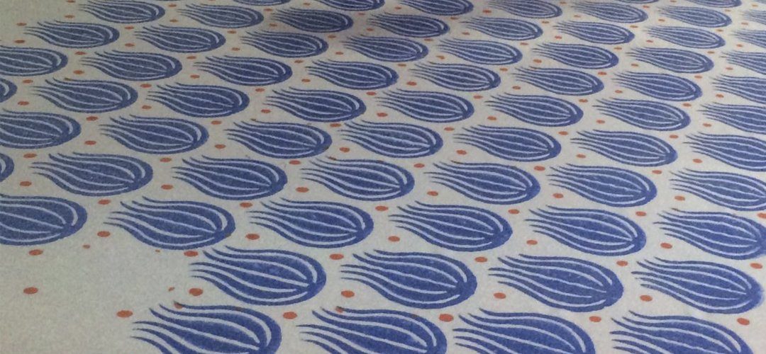 One of my favorite prints being developed for “Twist Me Dip Me Dye Me” is the tulip print. It combines two of my favorite things: tulips and polka dots.