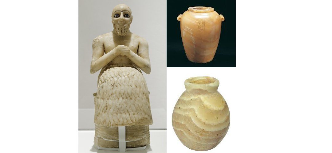 While researching alabaster, I found beautiful ancient vessels and statues from the Middle East made from the stone. My favorite pieces I found are the Ancient Egyptian jars that were used for mummification and were buried with a person after their death. It’s amazing how they created such beautiful objects to be taken with them to their next life.