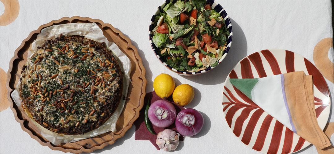 Here I’ve served it on the Palm Plate, and Fattoush salad is served in the generous-sized Palm Bowl.