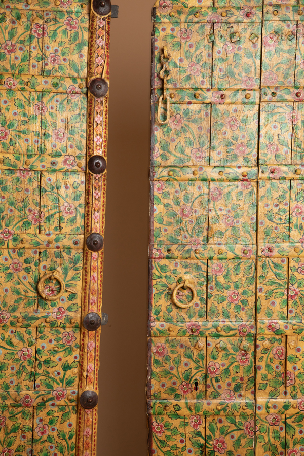 A hand painted antique wooden door with delicate floral details. Sourced from the antique markets of India.