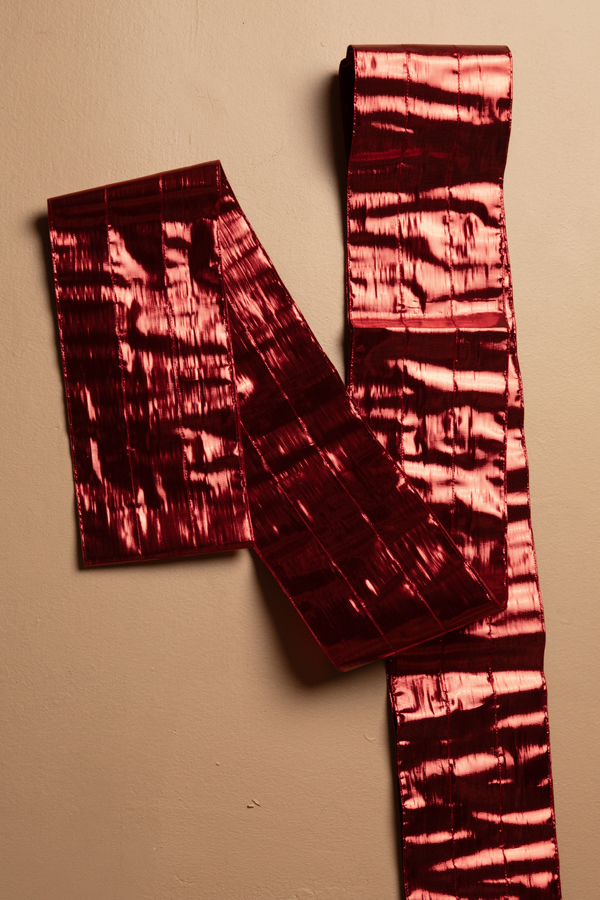 Long wide belt with multiple tying options. Made of thinly woven metallic thread. Dry clean only. Made in India.